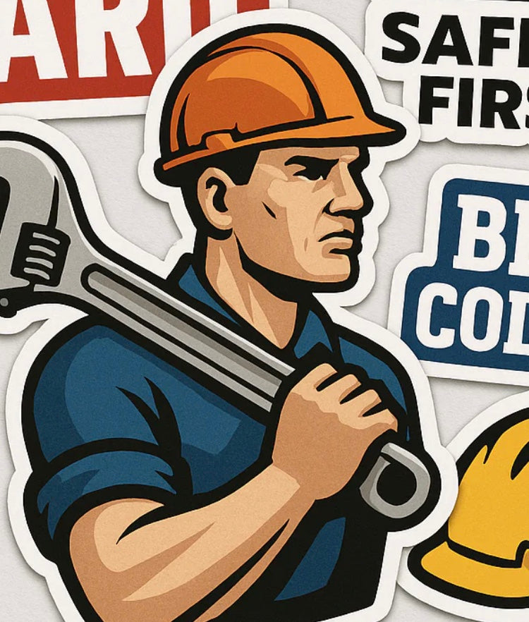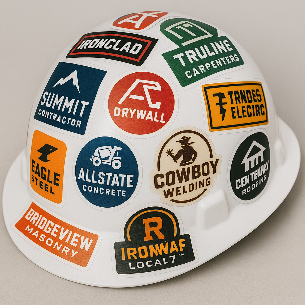 Our die-cut stickers are made from high-quality, weather-resistant vinyl designed to withstand the toughest conditions. With precision cutting and vibrant, long-lasting colors, they hold up against dirt, grease, water, and UV exposure—making them perfect for hard hats, toolboxes, trucks, and job sites. Built for durability, these stickers won’t fade, peel, or crack, keeping your brand looking sharp through every shift.